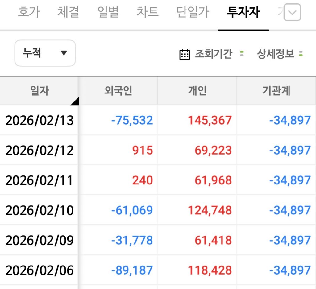 👥 3. 수급 분석: 외국인의 밀당과 개미들의 짝사랑