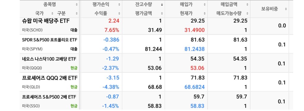 🏆 오늘의 MVP: SCHD (+4.80% 수익률) 투자를 시작하고 10일 동안 가장 든든하게 자리를 지켜준 종목입니다. 시장이 빠질 때 오히려 오르는 이 기묘한 쾌감은 배당 성장주의 진가를 보여줍니다.