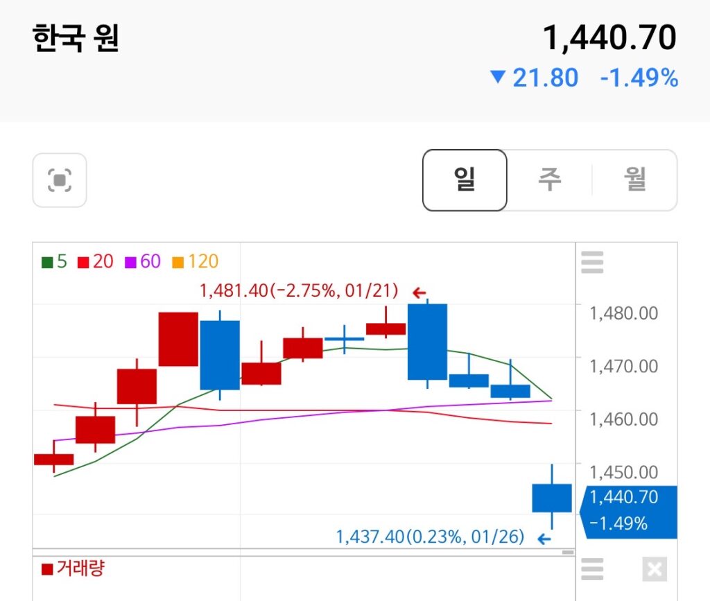 - 💵 원 달러 환율 하락 1,444.50원: 1,460원대를 위협하던 환율이 1,444원대로 내려앉으며 안정을 찾았습니다. 이는 국내 투자자들에게 추가 매수의 심리적 문턱을 낮춰주는 긍정적인 신호입니다. ✅