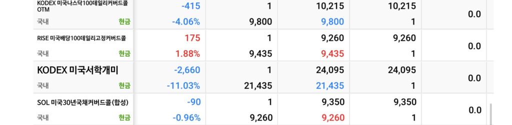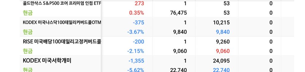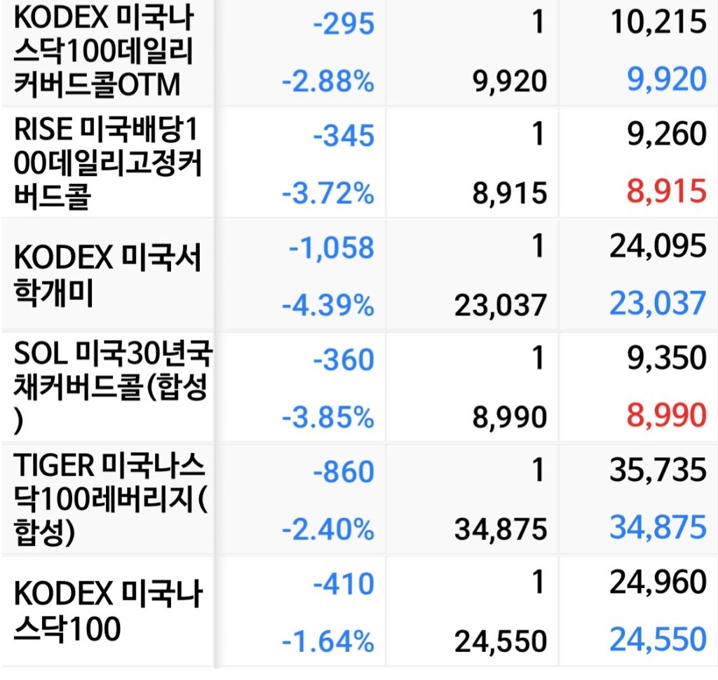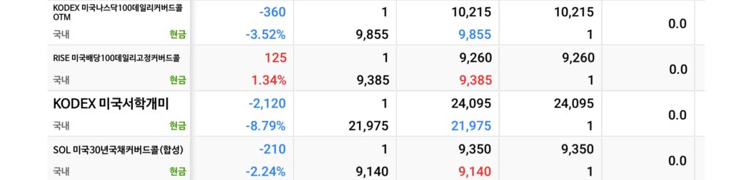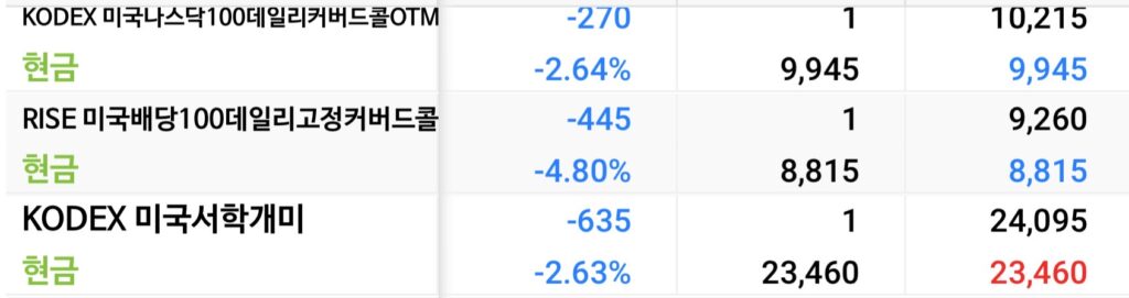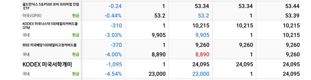 | 494300 | KODEX 미국나스닥100데일리 | 커버드콜 | +1.25% | -4.06% | |
