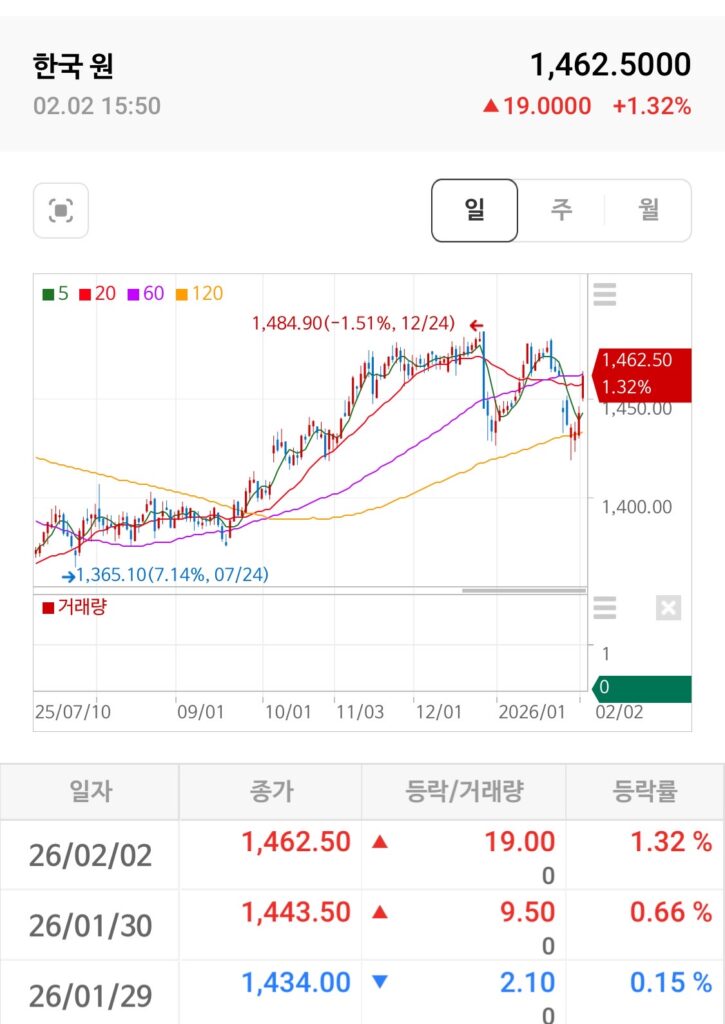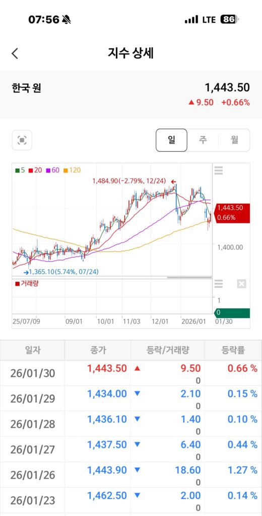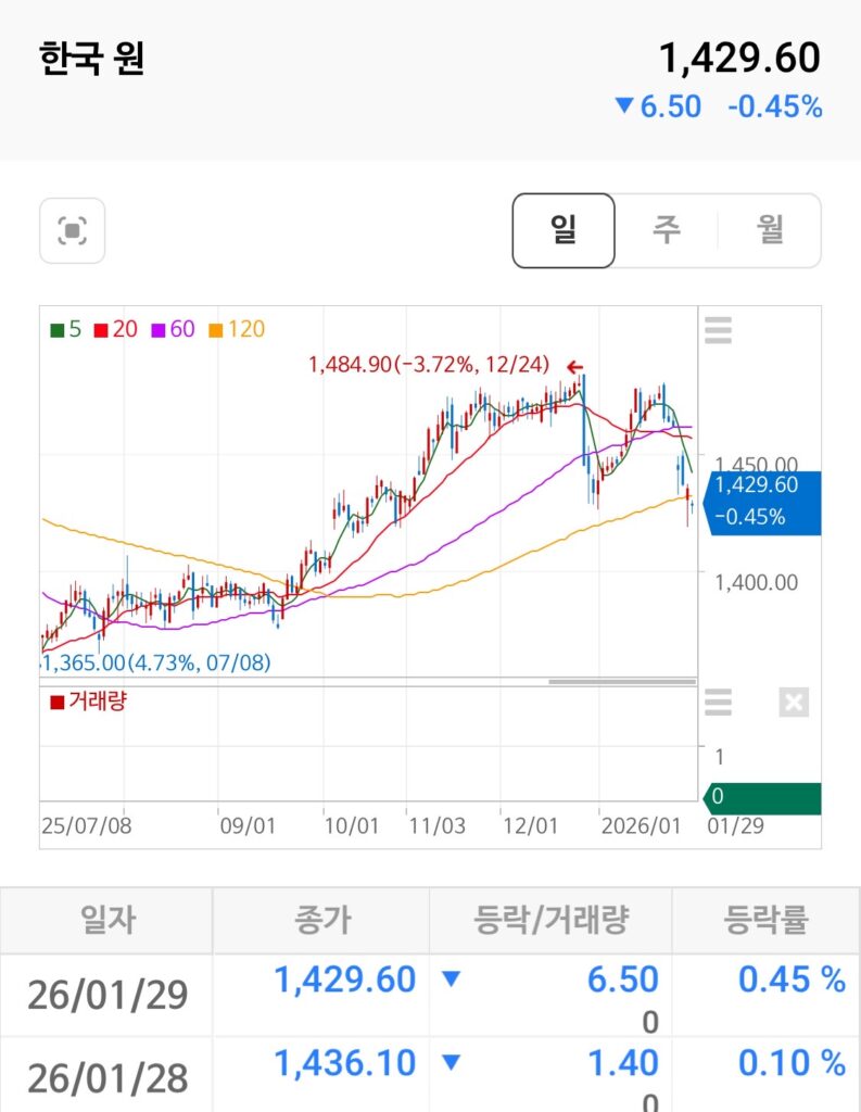 - 💵 원 달러 환율 하락 1,444.50원: 1,460원대를 위협하던 환율이 1,444원대로 내려앉으며 안정을 찾았습니다. 이는 국내 투자자들에게 추가 매수의 심리적 문턱을 낮춰주는 긍정적인 신호입니다. ✅