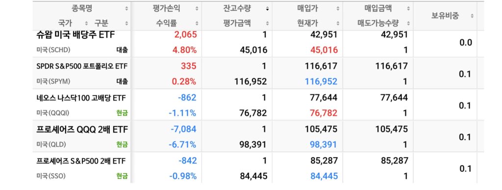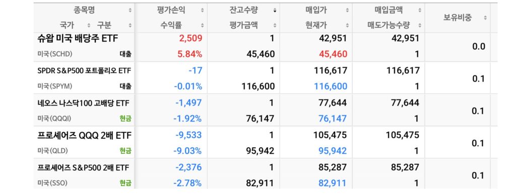 보유 종목의 최신 등락률과 수익률입니다. 한국 상장 ETF들은 미국 본장의 변동성을 즉각 반영하여 정직한 숫자를 보여주고 있습니다. 📈
