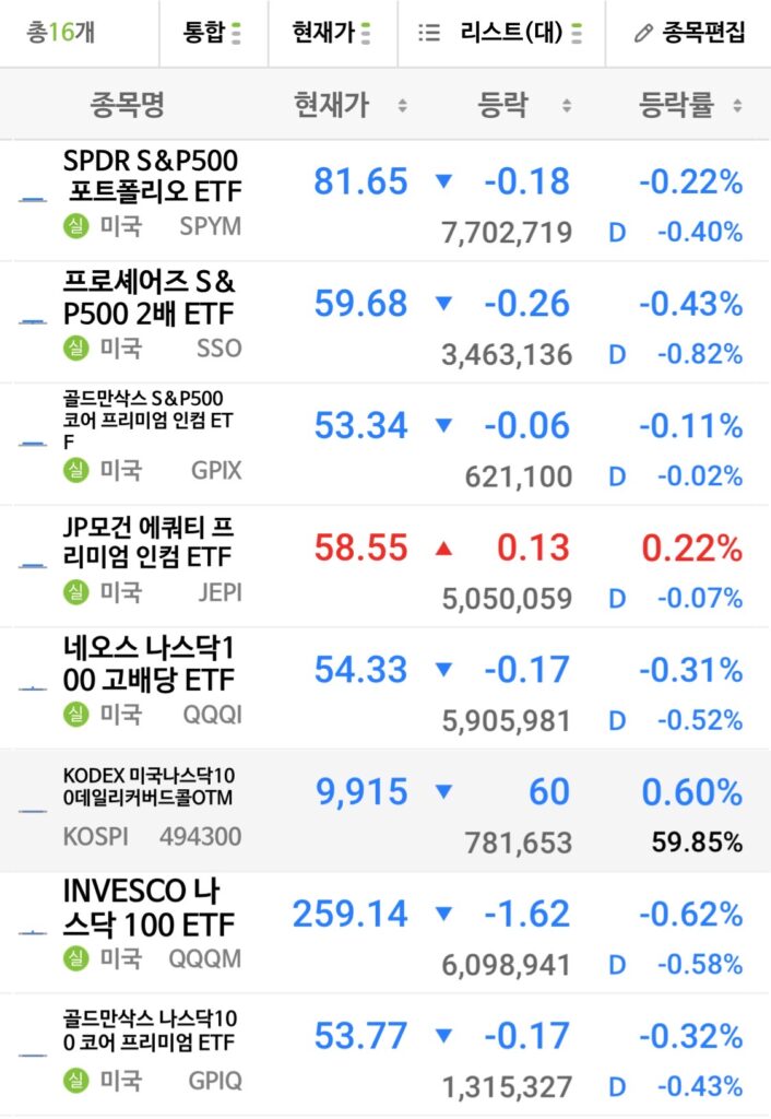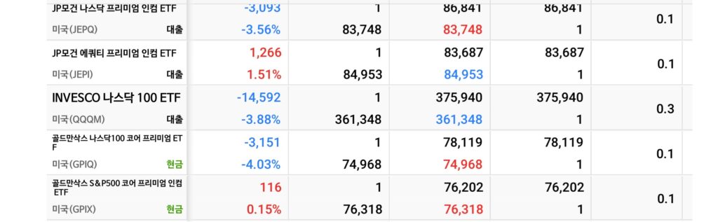 | JEPQ | JPMorgan Nasdaq Prem | 커버드콜 | +1.97% | -1.99% | |