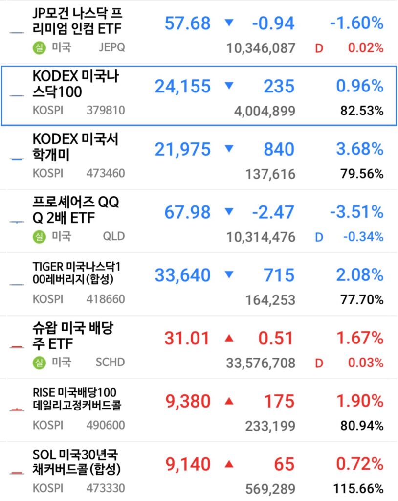| 418660 | TIGER 미국나스닥100레버 | 2x 레버리지 | +2.38% | -8.15% | Worst |
